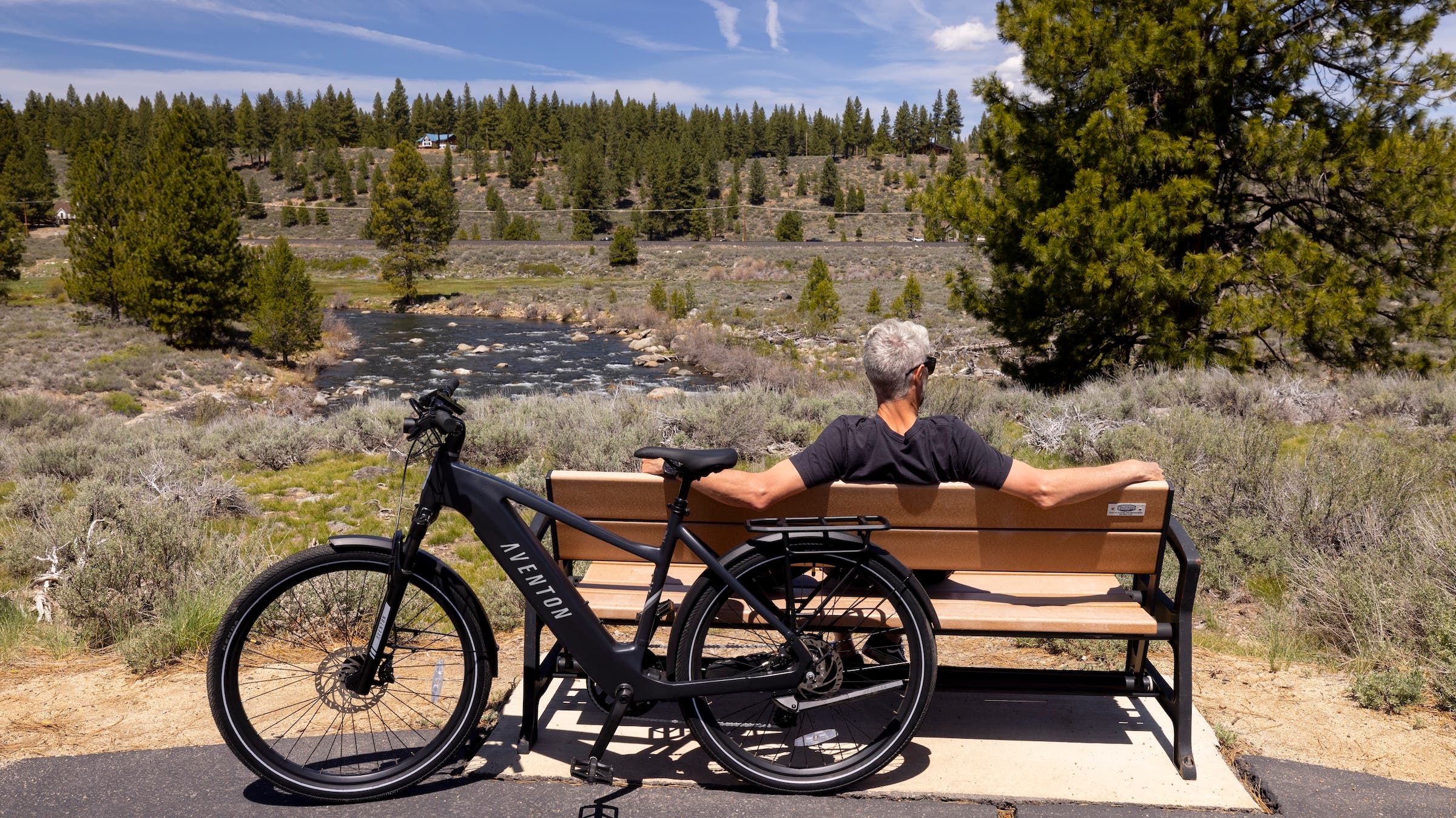 Delivering up to 70 miles of range (60 for the Abound LR), the Aventon bikes carry the duo first to a Truckee breakfast hot spot to catch up over a cup of coffee. Then it’s on to the Truckee River Legacy Trail, the city’s popular five-mile riverside path. They zoom up to 20 mph along the rushing river, the Mount Rose Wilderness rising in the distance. They ride alongside freight trains, cross bridges, and dart down side streets on the return.